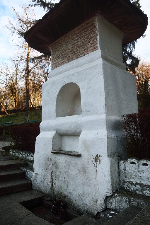 Legenda spune că după ridicarea mănăstirii, domnitorul le-a luat scările meșterilor rămași pe mănăstire pentru a nu mai construi o alta la fel de frumoasă. Manole și-a confecționat aripi din șiță încercând să zboare de pe mănăstire. În locul în care a căzut a apărut un izvor și astfel a apărut Fântâna Meșterului Manole.